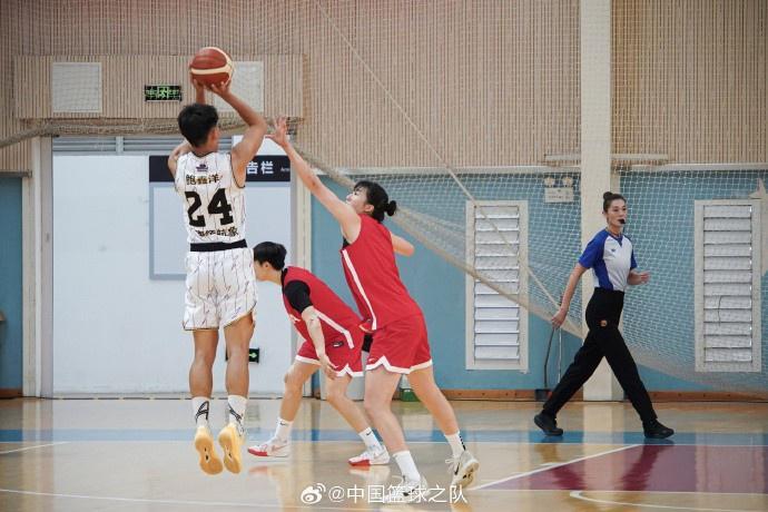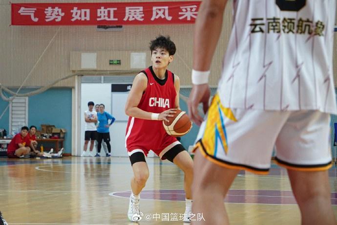 “【夏训进行时】9月5日下午,夏训中的中国女篮在海埂体育训练基地与云南财经大学男篮进行了一场教学赛,中国女篮最终以95:86取胜。这次比赛也是本次夏训中“以赛促练”的重要一环,旨在通过实战检验训练成果,磨练战术配合,提升队伍在身体对抗和快节奏攻防中的适应能力。云南师范大学实验中学师生和云南财经大学女篮队员也在下午来到了现场观看比赛。”中国篮球之队官博在图片旁边写道。