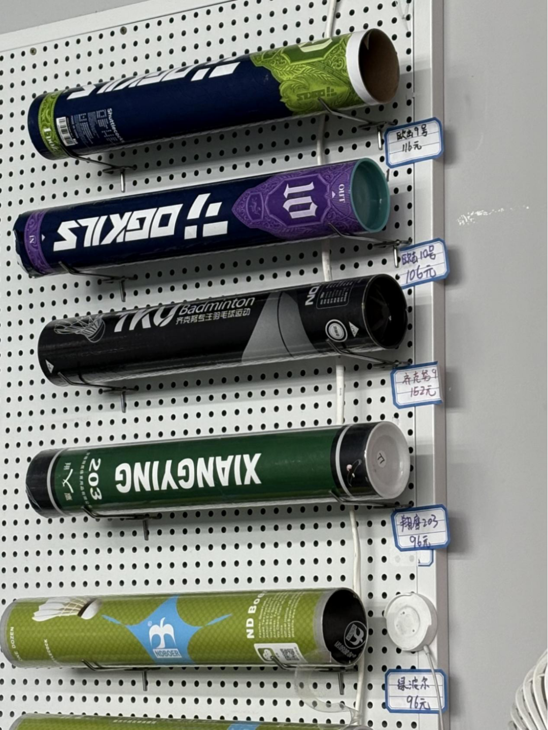 球馆里展示的国产羽毛球产品。(图/阿肉)